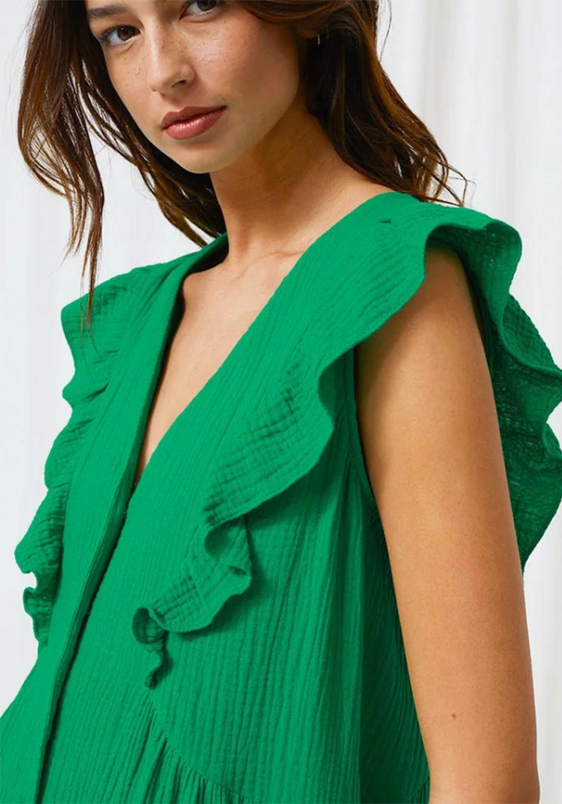 Conçue en gaze de coton, cette robe est l'incarnation même de la légèreté. Sa coupe ample assure une liberté de mouvement totale, tandis que les bretelles fines ajustables vous permettent de personnaliser son fit selon vos préférences. La couleur vert olive, à la fois tendance et intemporelle, ajoute une touche de sophistication naturelle à votre garde-robe.