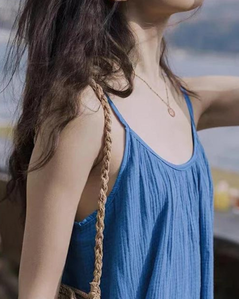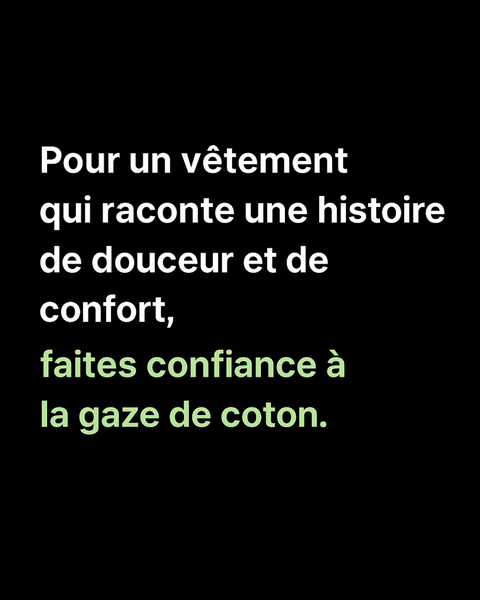 La gaze de coton se pose sur la peau sans l'alourdir. Elle respire avec vous, suit vos mouvements, et laisse une sensation de liberté dès l'enfilage.